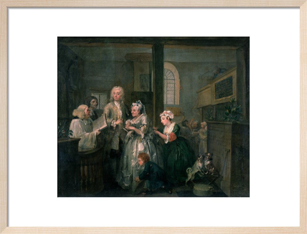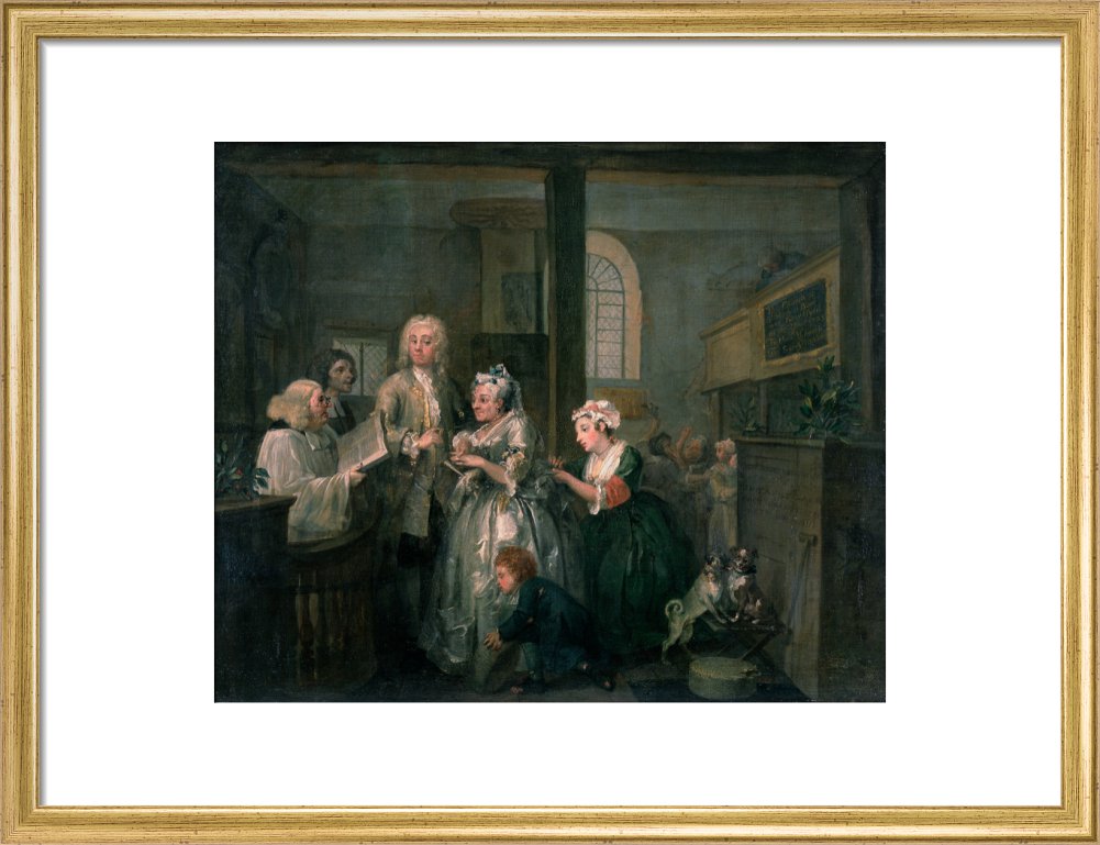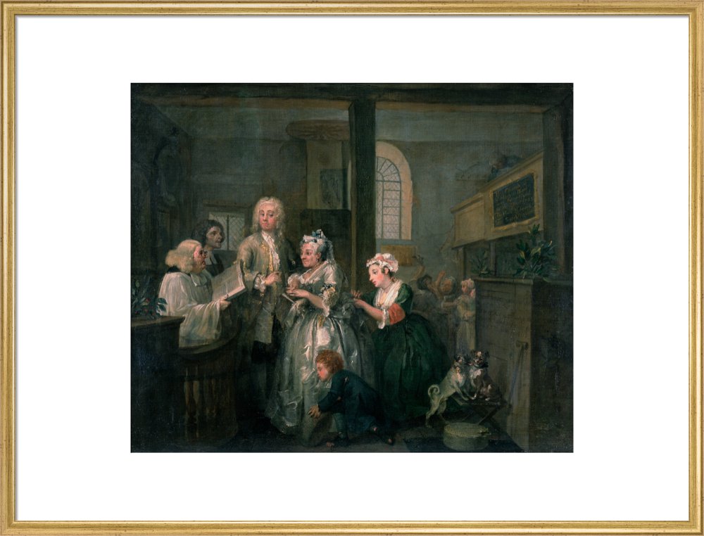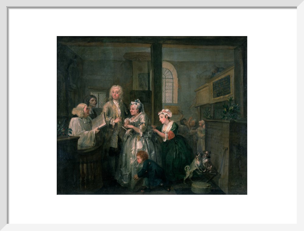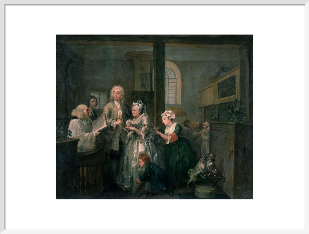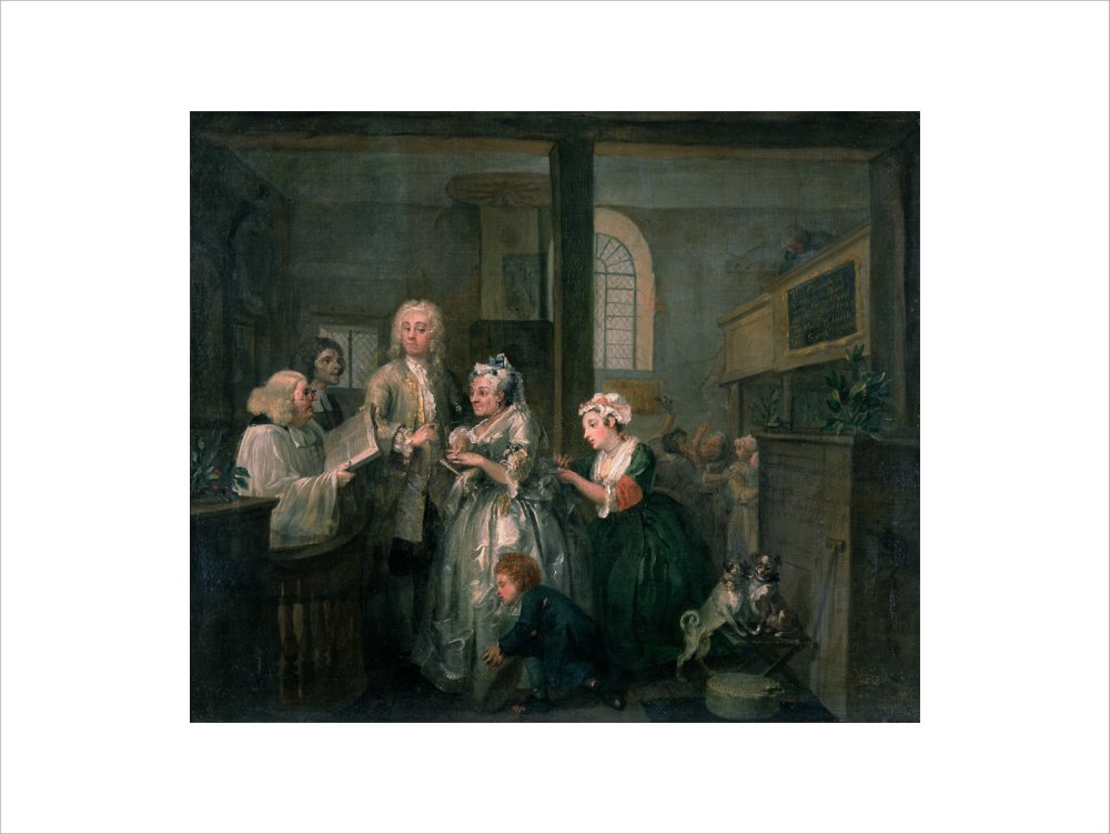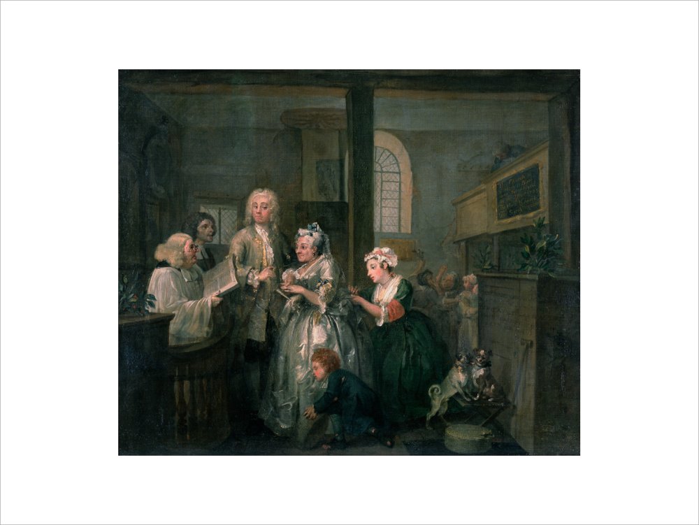 The fifth in a set of eight paintings which document the rise and fall of a young heir across London. The Rake's Progress was produced by William Hogarth between 1732 - 1734 as preparatory works for engravings published the following year.