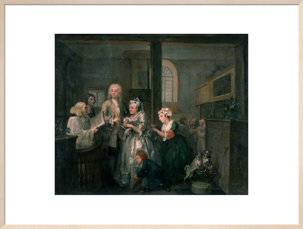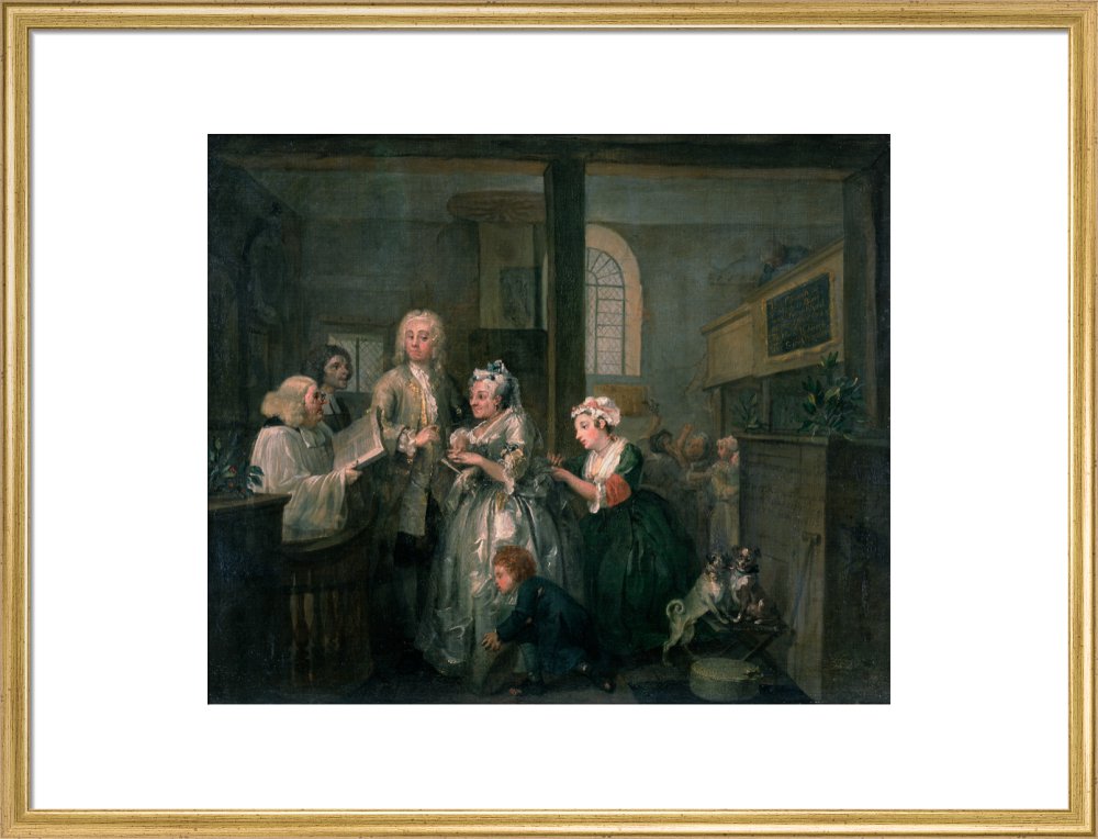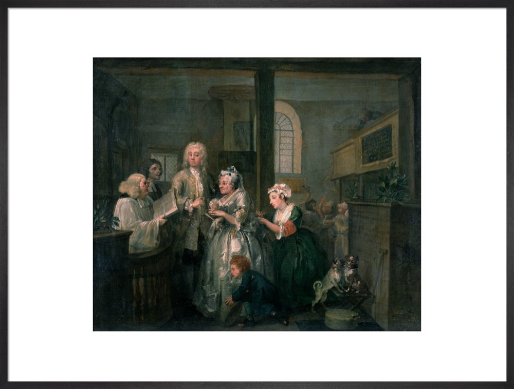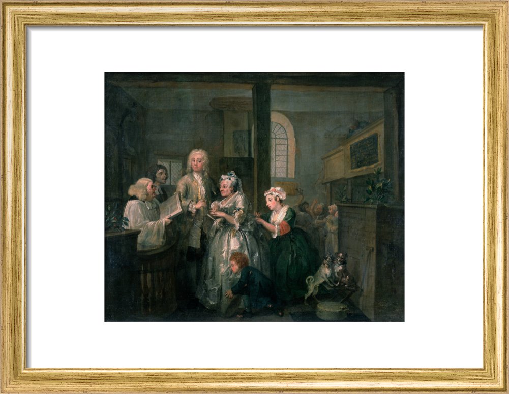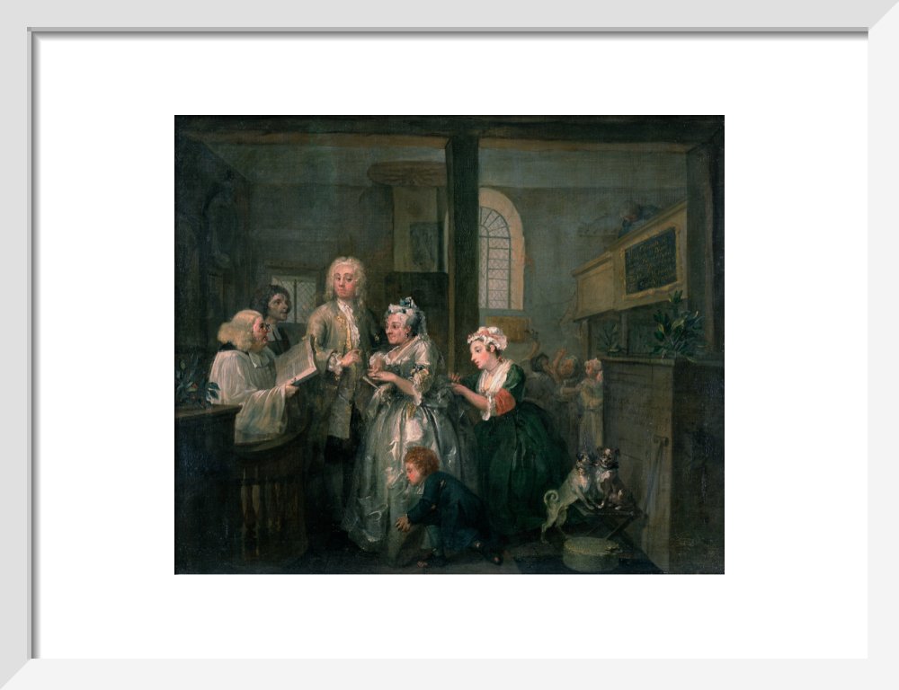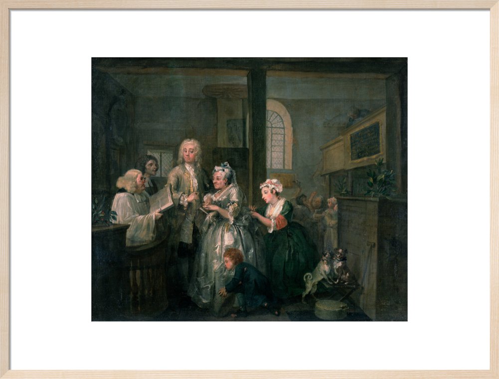 The fifth in a set of eight paintings which document the rise and fall of a young heir across London. The Rake's Progress was produced by William Hogarth between 1732 - 1734 as preparatory works for engravings published the following year.