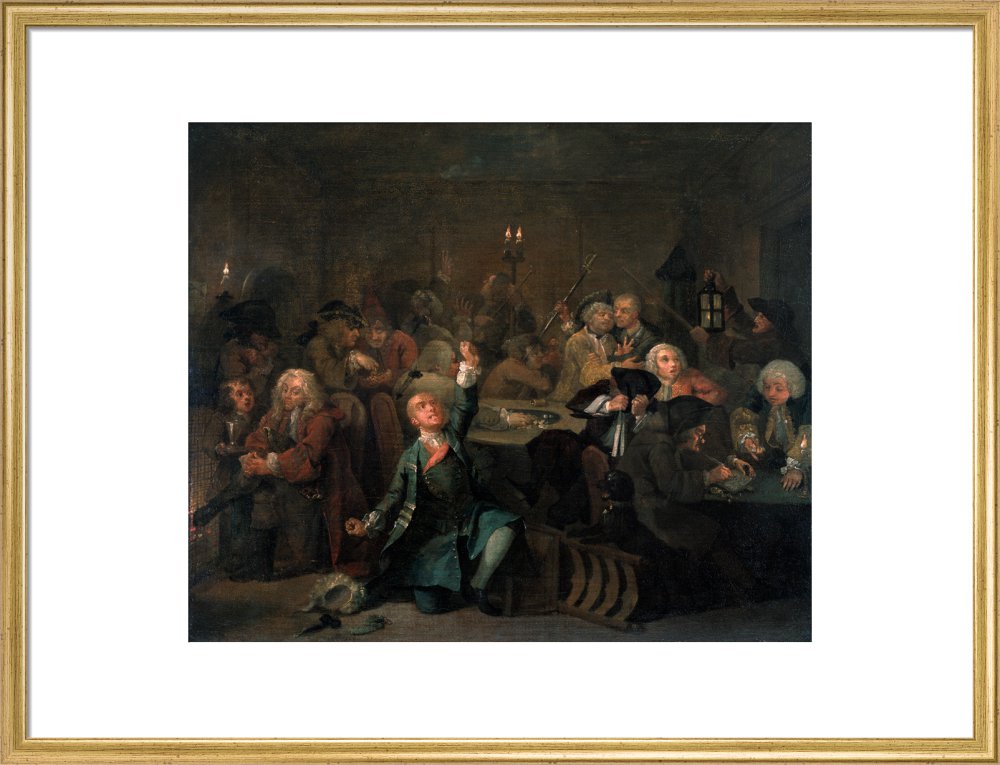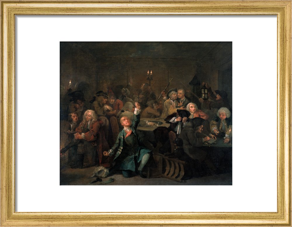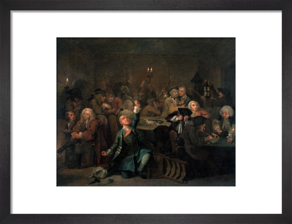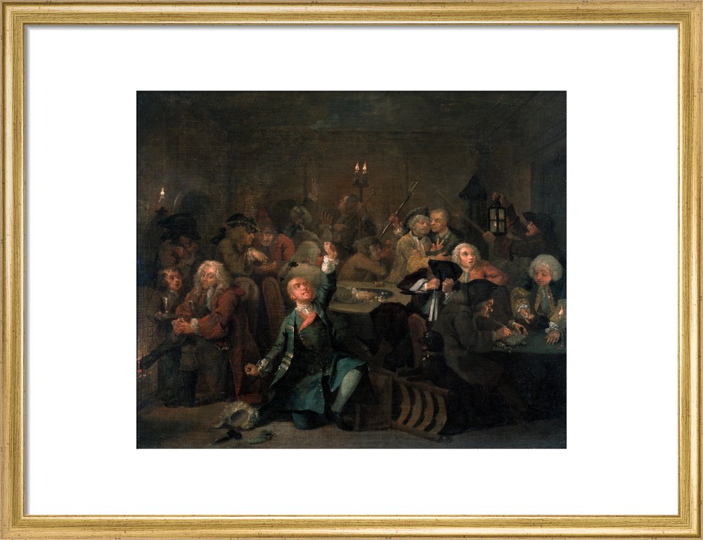 The sixth in a set of eight paintings which document the rise and fall of a young heir across London. The Rake's Progress was produced by William Hogarth between 1732 - 1734 as preparatory works for engravings published the following year.