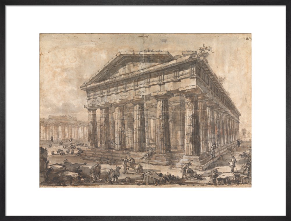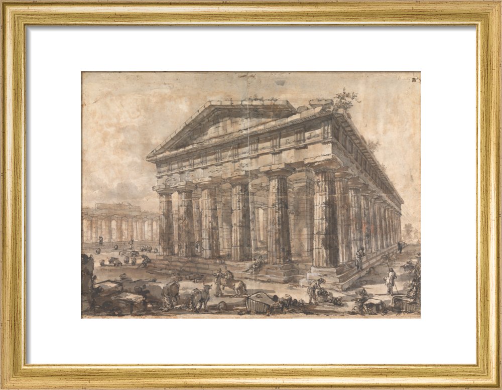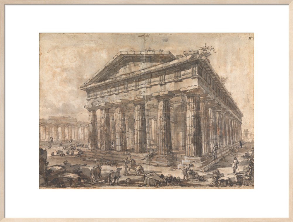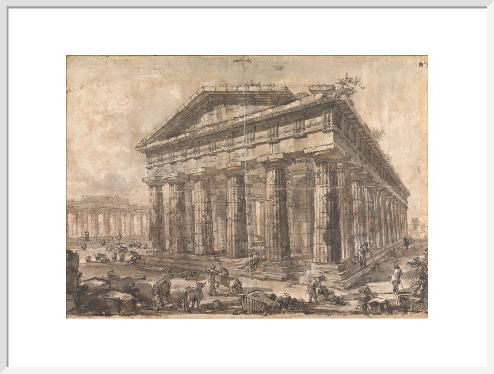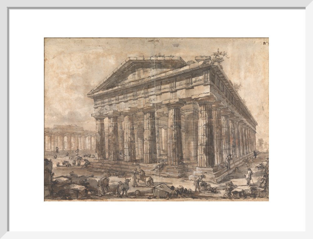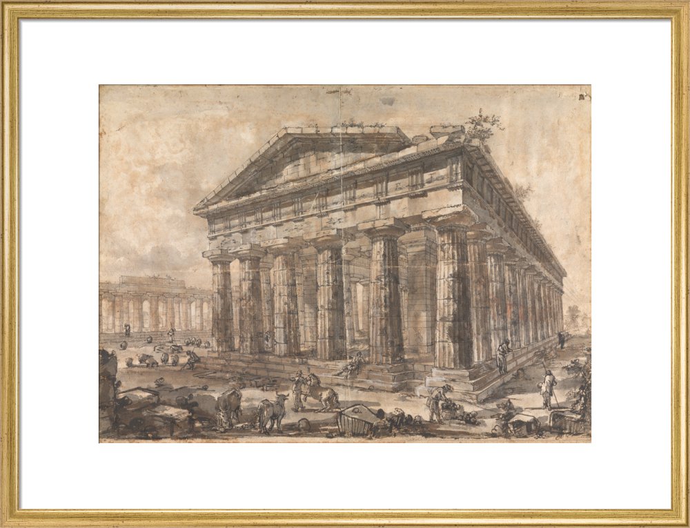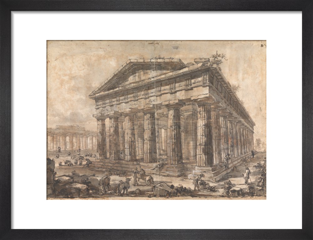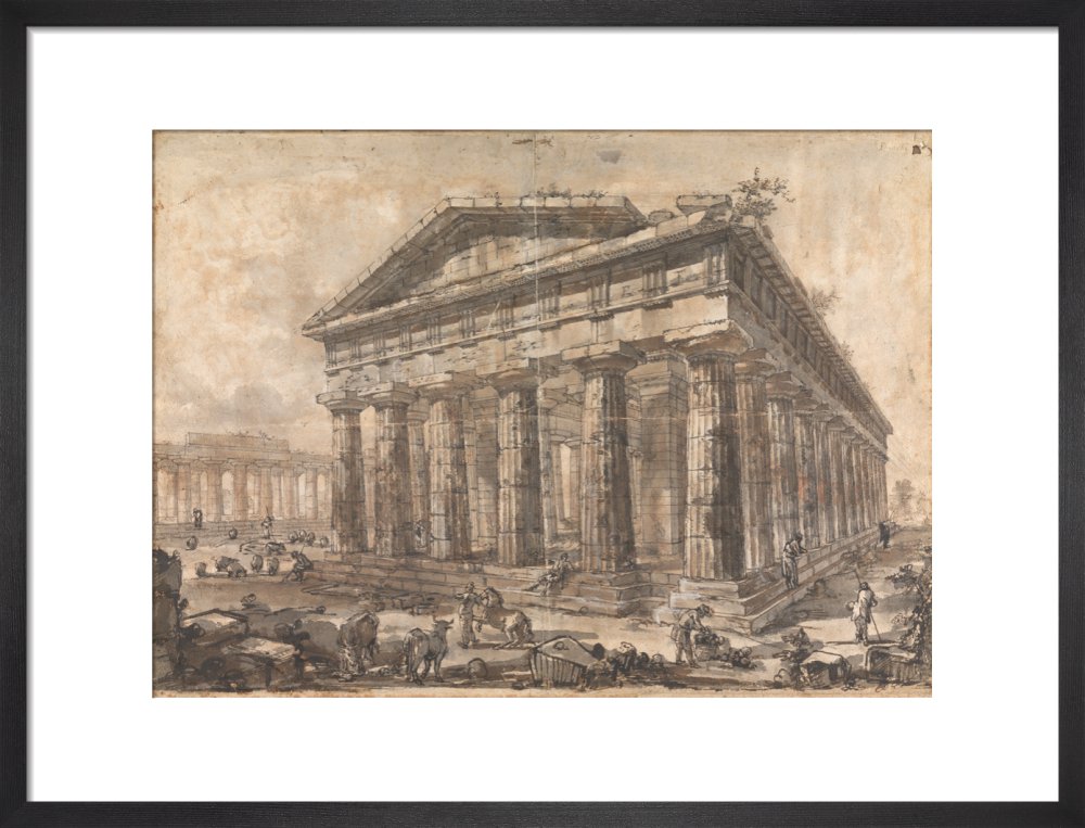 North Eastern view of the exterior of the Temple of Neptune, Paestum, with Basilica to the left. Study for Différentes vues de Pesto (Different Views of Paestum), plate X. Soane collected 15 original Piranesi drawings for Paestum which are still on display in his Picture Room.