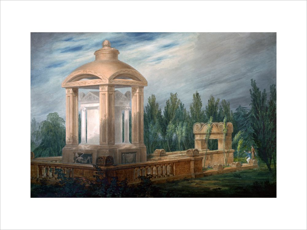Perspective design showing the Soane family tomb in an imaginary landscape.