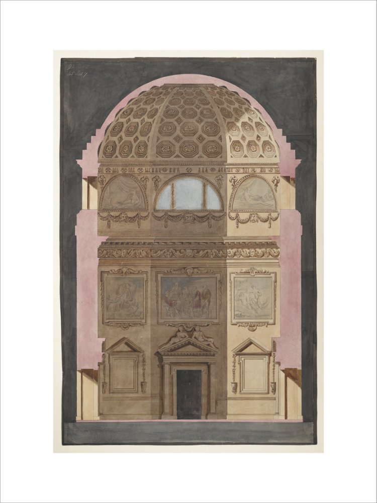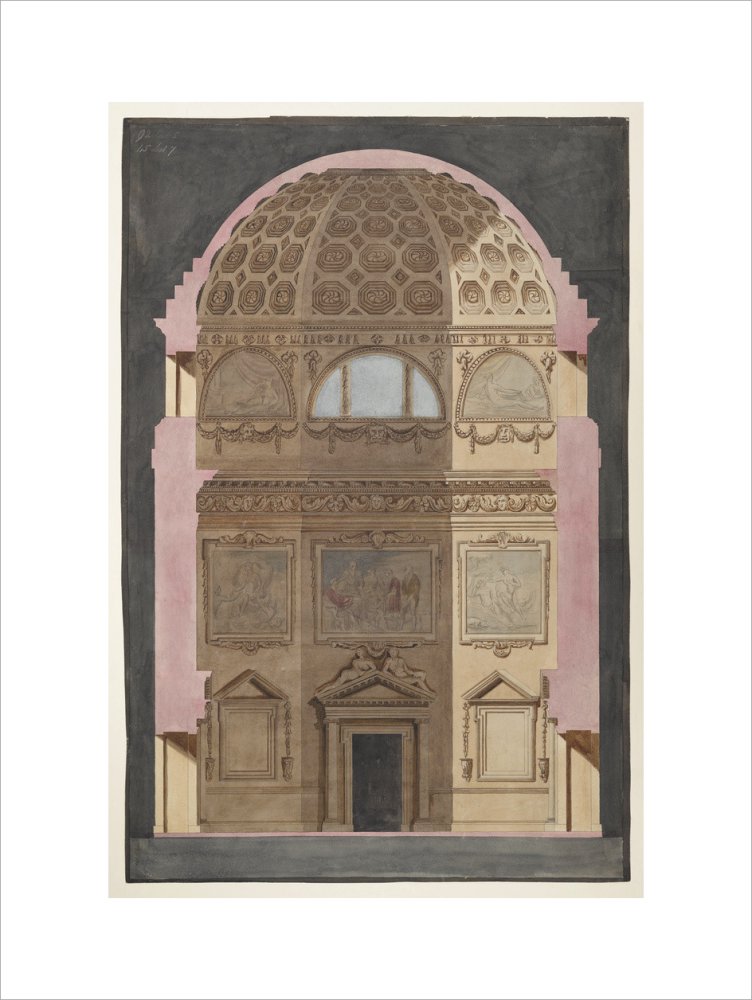Cross-section through the Upper Tribune of Chiswick House, an octagonal room with a central dome. Taken from the Royal Academy Lecture Drawings of buildings by Lord Burlington, held within the Soane Drawing Office.