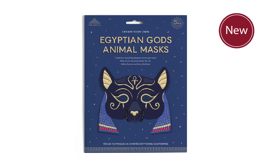 Create four beautifully illustrated Egyptian animal god masks with this all in one kit - no glue or scissors needed! Become a god or goddess and make Anubis the jackal, Bastet the cat, Hathor the cow and Horus the falcon. Learn while you play and discover fascinating ancient Egyptian facts with the activity sheet included inside.