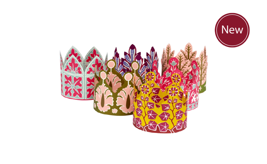 Patterned Paper Coronets for feasts, parties, high days and holidays. Six Different Magnificent Designs. Never again will you be satisfied with one of those feeble tissue paper hats that comes out of a cracker!